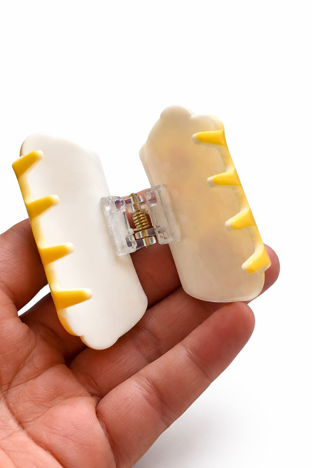 Made from high-quality, glossy-finish material, it features a sturdy spring mechanism that ensures a firm grip without pulling or damaging your hair. The smooth edges and lightweight design make it comfortable for all-day wear.