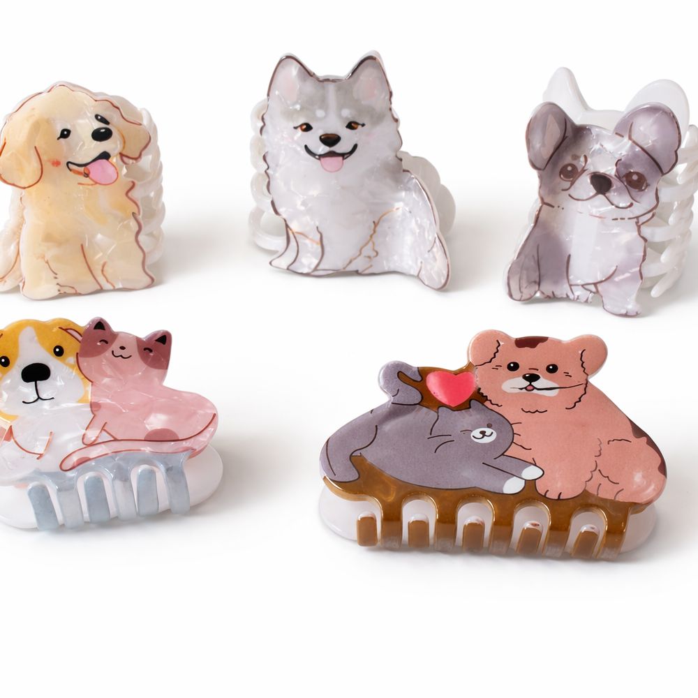 Show off your love for furry friends with our delightful Cute Pet Hair Clutcher. Designed with charming pet-inspired shapes like puppies and kittens, this accessory brings a sweet and playful touch to any look.